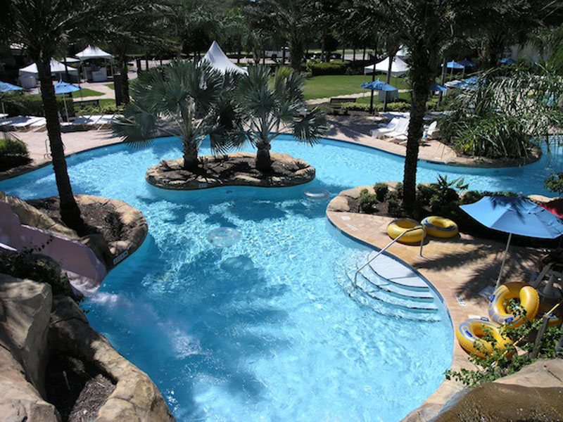 Add to this an award winning tennis centre, fully serviced spa and fitness centre, biking, walking and hiking trails and the numerous community pools then you can easily see how it really is Orlandos most prestigious short term rental community. There is a multi level water-park which includes numerous slides, a lazy river, waterfalls, interactive children’s pools and a pool bar all set in tropical landscaped surroundings. As an owner you would also have full use of all of the facilities throughout the resort including the communal pool and bar at Seven Eagles and the five star restaurants and amenities at the Wyndham Hotel / Reunion Grande Towers. Here you will have use of the open air pool on the 11th Floor where you get fantastic panoramic views of Reunion resort and the general Orlando area. |