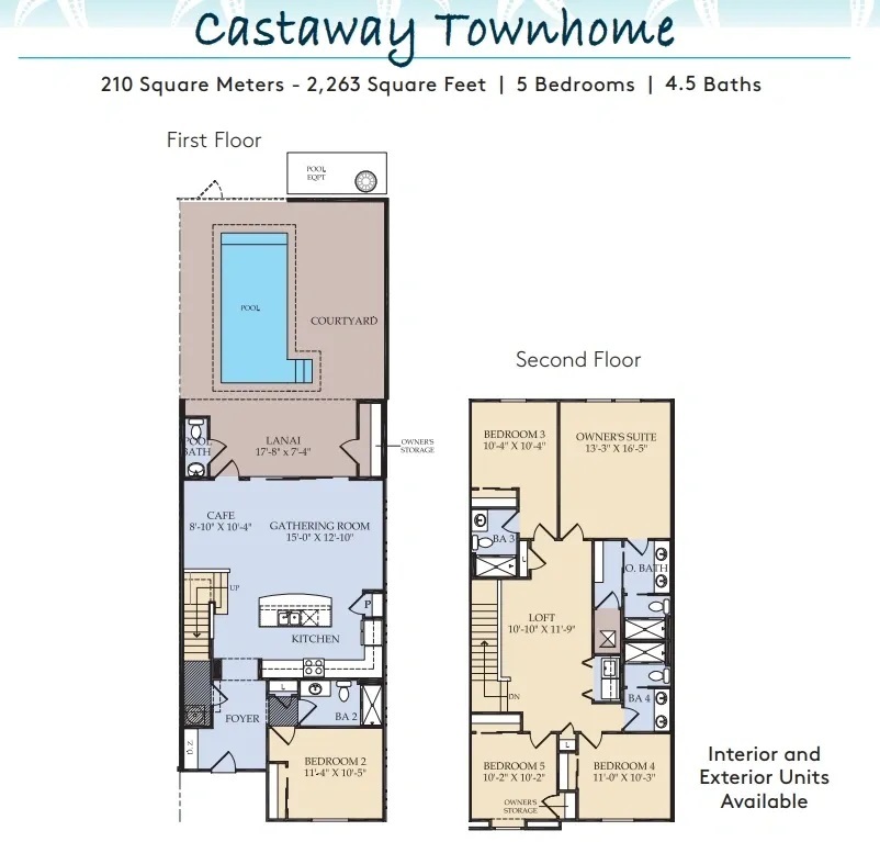The Castaway is a spacious interior townhome unit featuring an unheard-of five bedrooms three of which are full suites. An additional half-pool bath, owner’s storage, and oversized loft await in this luxurious vacation townhome Castaway Floor Plan Matterport Castaway Townhome Virtual Tour |