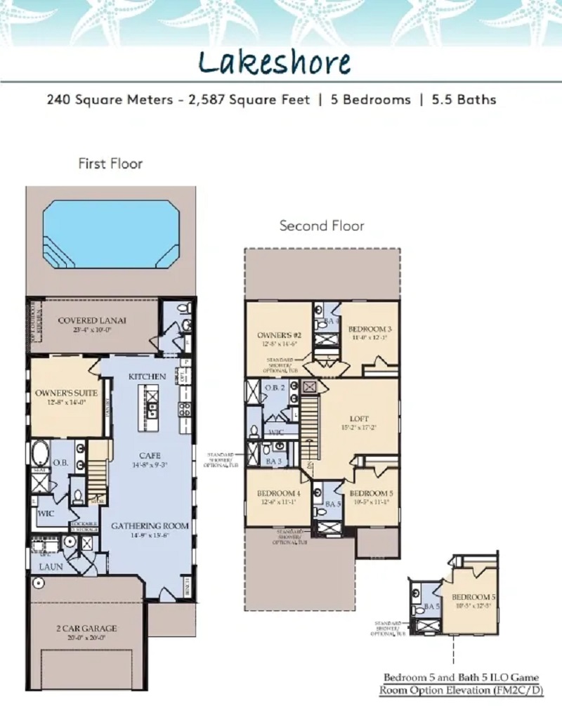 The 5 bedroom, 2,587 sq ft Lakeshore Model at Windsor Island Resort Orlando is a thoughtful floor plan with two owner’s suites and two to three additional bedroom suites. An over sized game room and loft space make this home a great place to kick back and relax Lakeshore Floor Plan Matterport Lakeshore Virtual Tour |